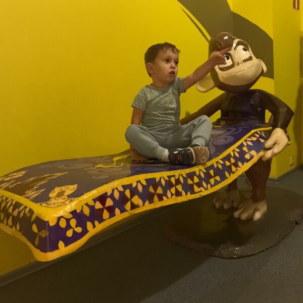 Моему 3-летнему малышу, хотя он и больше половины персонажей не знает, было очень интересно (что для меня было даже неожиданно). Особенно долго мы провели в машинах из фильмов "Безумный макс " и "Назад в будущее", там же можно и порулить, на все рычаги понажимать)) Далее по мосту пройти, во все уголки заглянуть, тут посидеть, там за дверь шкафа к монстрам заглянуть, кому-то помочь, пельмешки для Кунг-Фу панды загрузить, на ковре-самолете пролететь, сквозь стену пройти на платформу 3/4, потанцевать и песни попеть вместе с бупундуками. Честно, я даже не ожидала , что козявка там будет настолько увлечен. Очень вежливый, дружелюбный и располагающий персонал на входе.